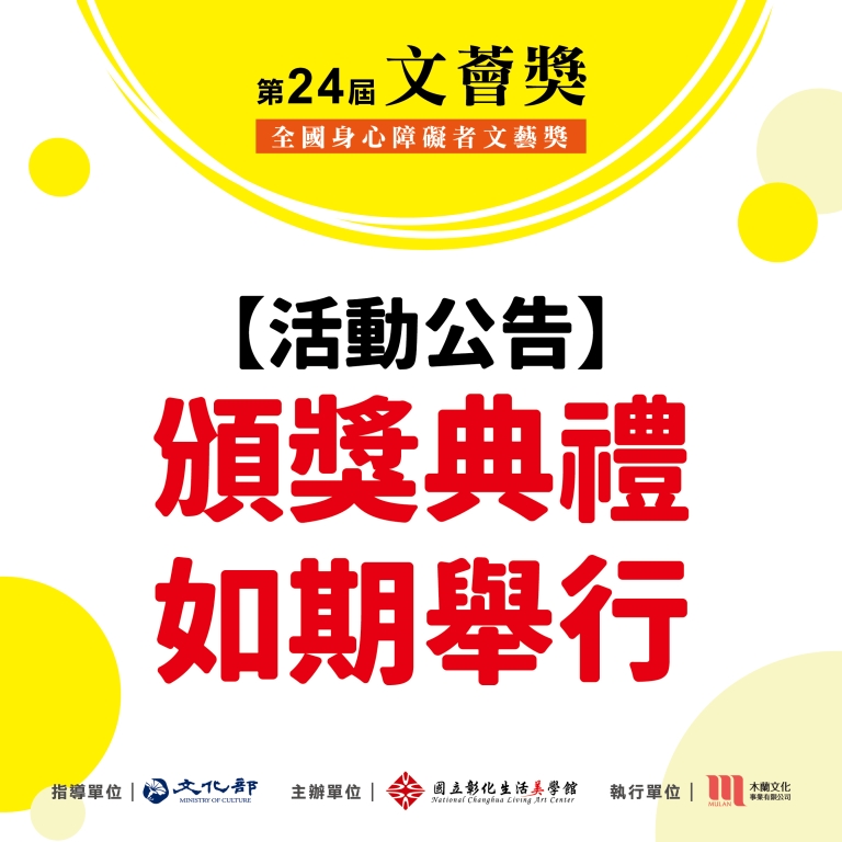 敬請各位與會貴賓、得獎者留意最新消息,並以自身安全為第一優先,平安前來。